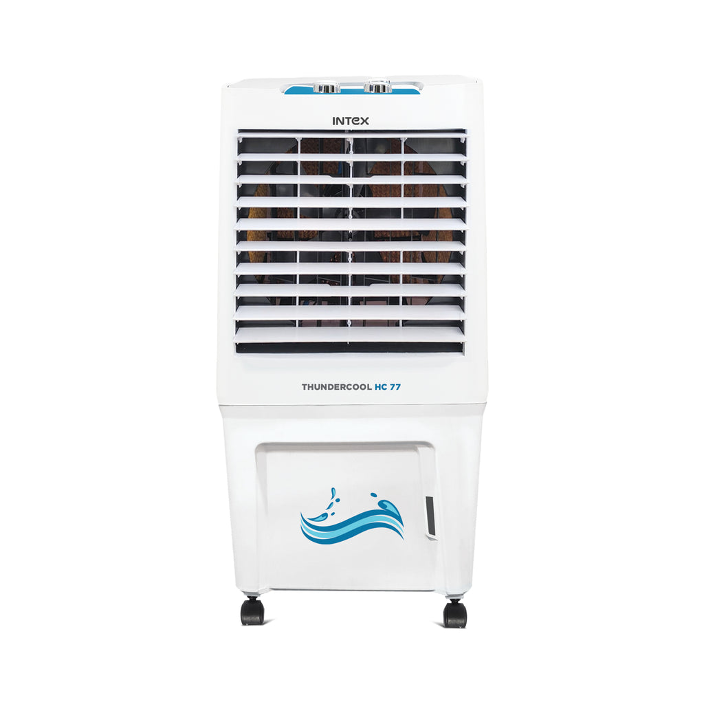 The INTEX THUNDERCOOL HC 77 is a 77-litre high-performance desert air cooler, designed to beat extreme heat with powerful airflow and efficient cooling. Ideal for homes, offices, and medium-sized commercial spaces, it delivers consistent cooling while consuming low power.