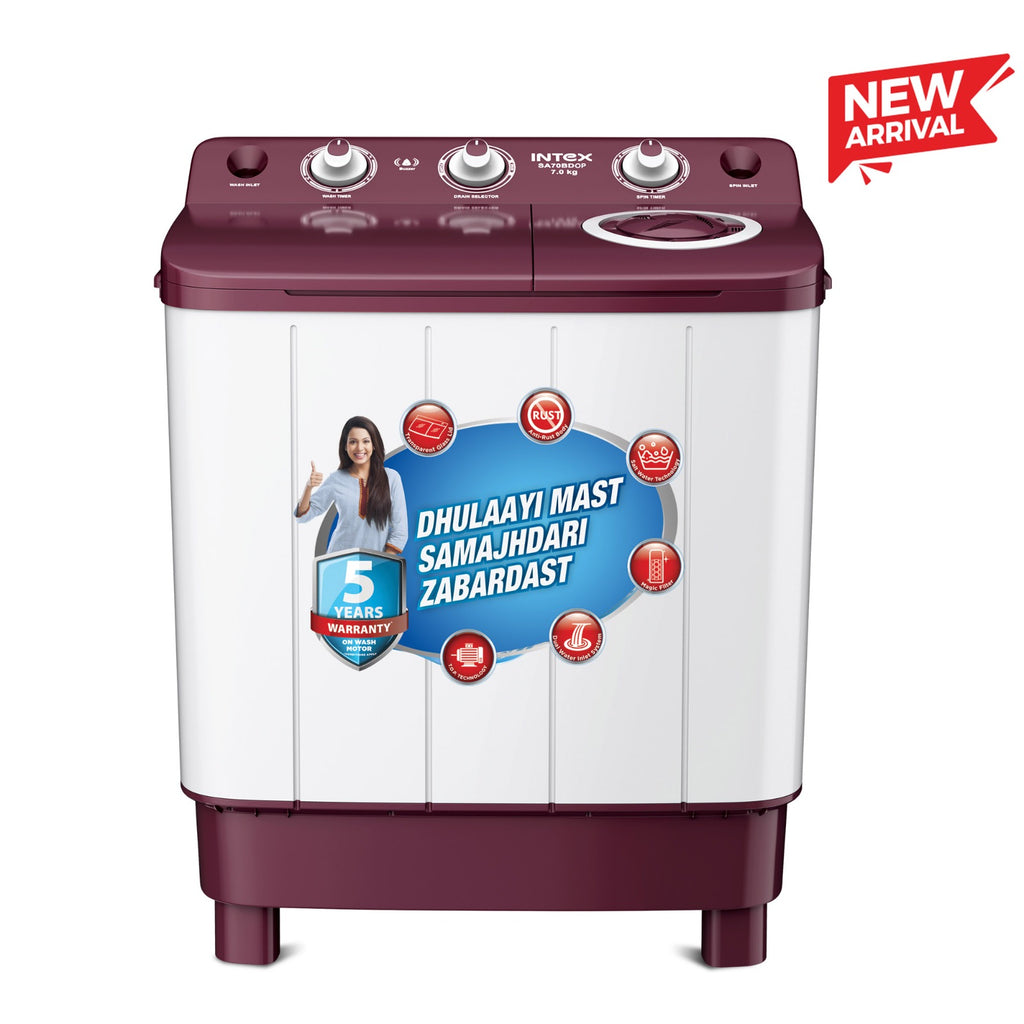 The Intex 7 Kg Semi-Automatic Washing Machine (Models: SA70BDOP & SA70BLOP) combines superior wash performance with durable build quality. Featuring a rust-free body, salt water technology, and powerful motor with T.O.P. technology, it’s designed for hassle-free washing in Indian households. The double water inlet and 3 knob functions ensure convenient operation, while the air dry window helps speed up drying. With its sturdy castor wheels, moving it around your home is effortless.